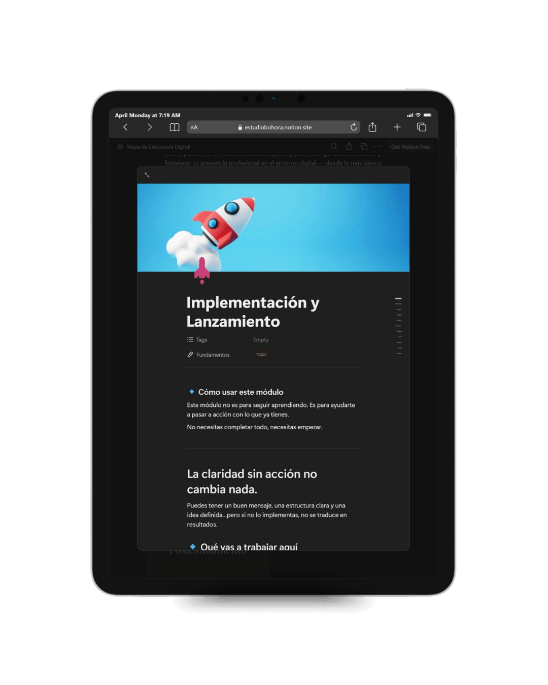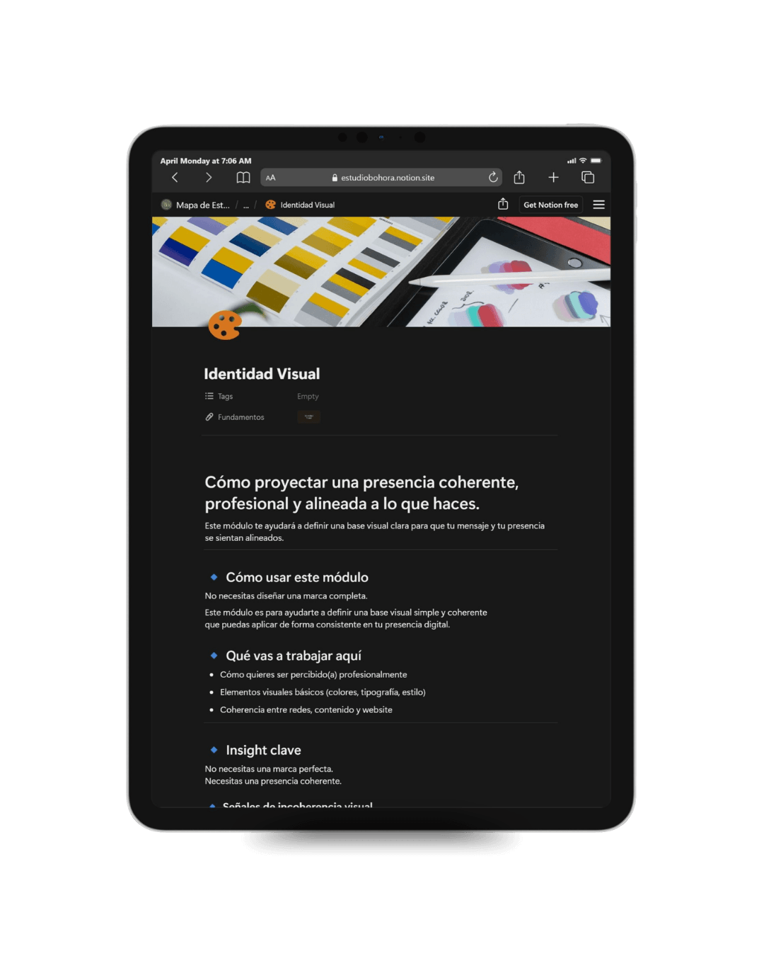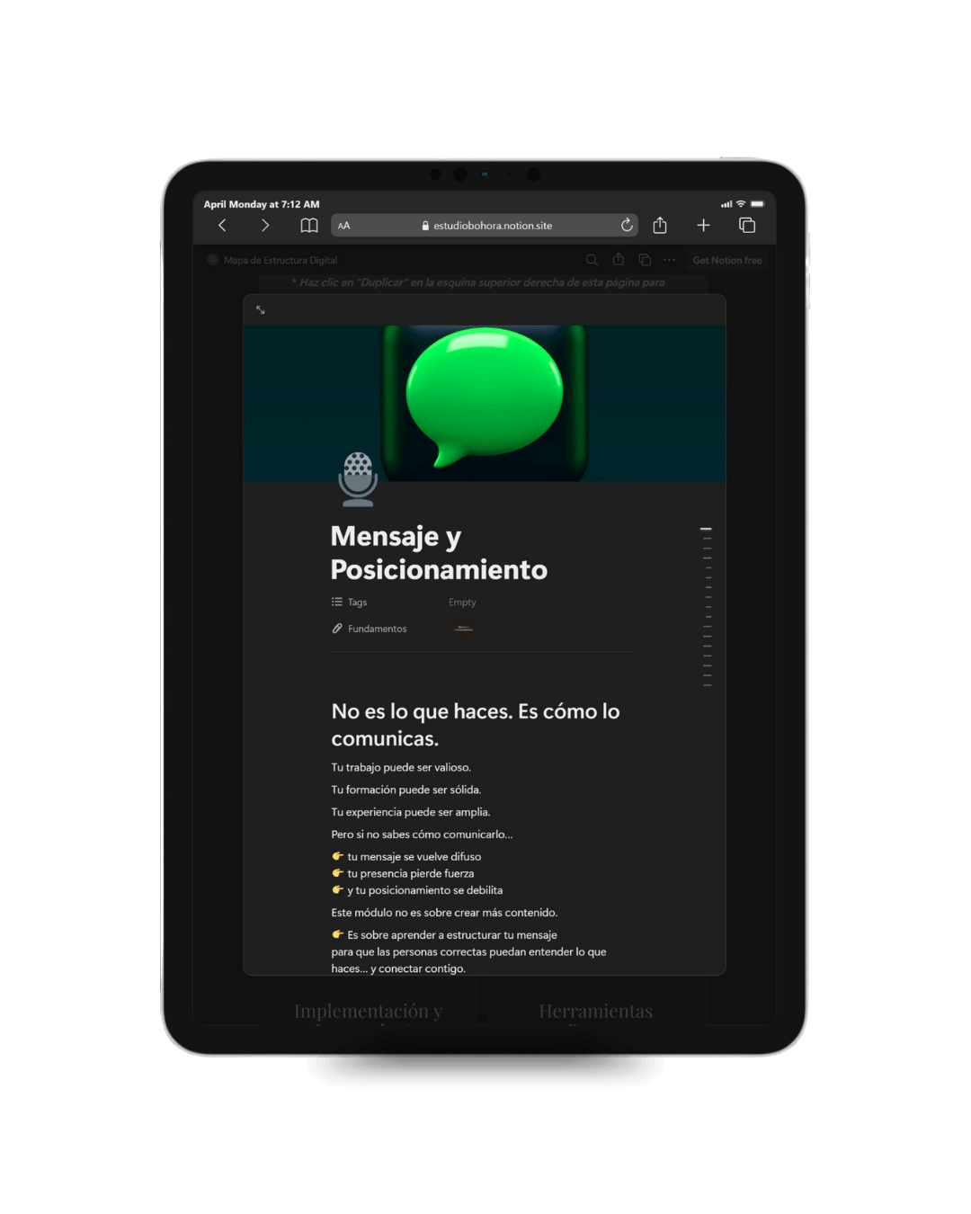 A través de un sistema paso a paso en Notion, podrás definir tu mensaje, organizar tu contenido, estructurar tu página web y alinear toda tu presencia digital con una dirección clara.