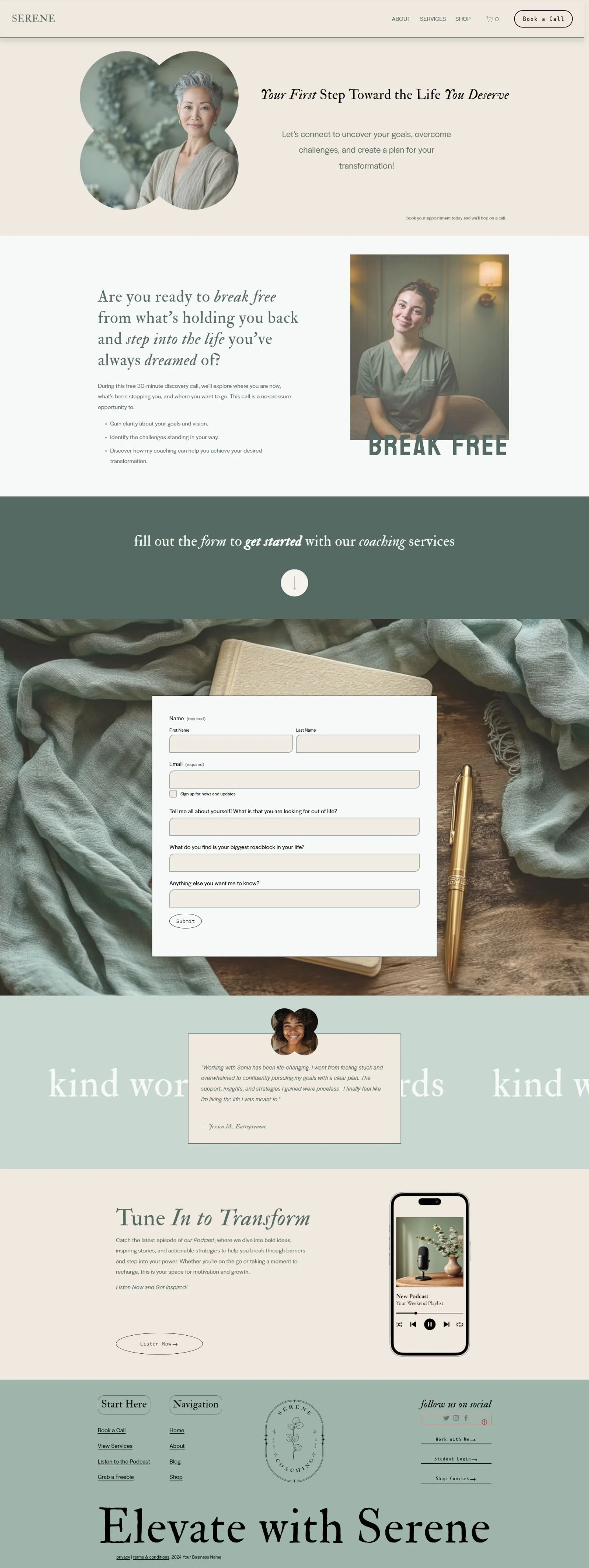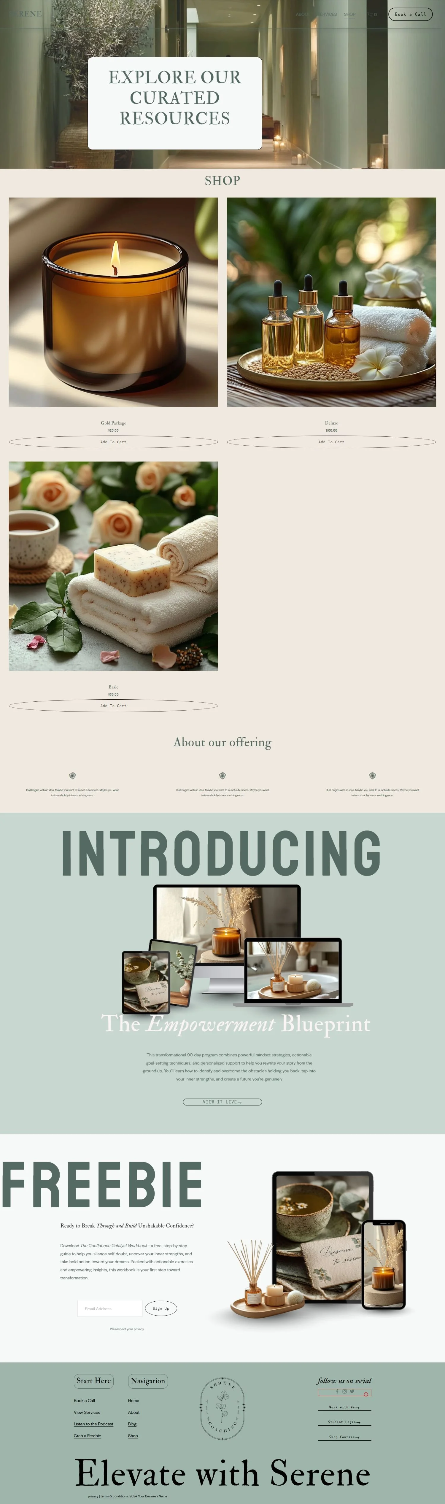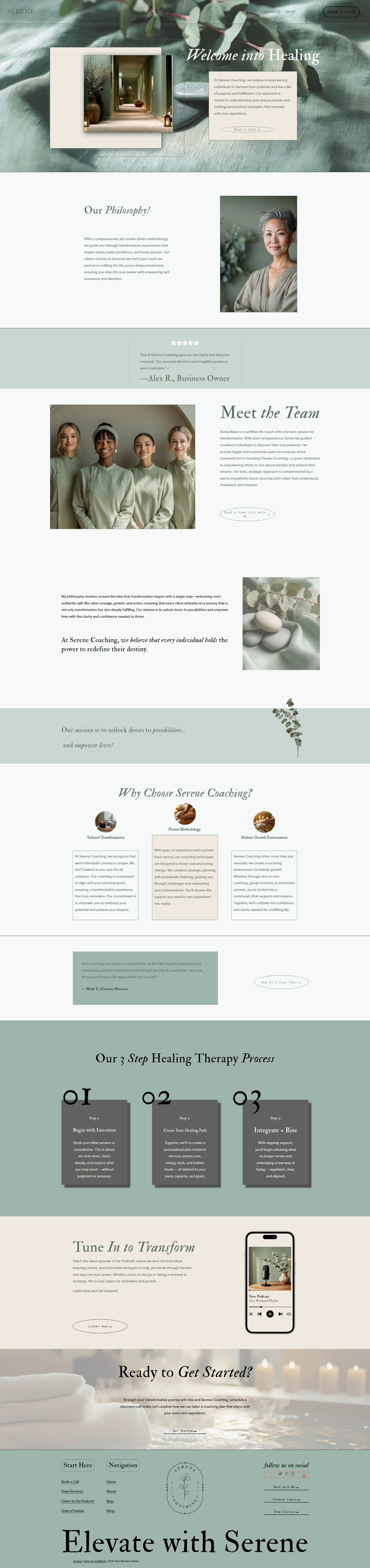 SereneSerene is a calming, modern Squarespace template designed for yoga studios, wellness coaches, holistic healers, nutritionists, and zen-inspired spas. With a light, intentional layout and more than 15 fully responsive pages, this template gives you everything you need to create a peaceful, trustworthy online presence that feels aligned with your practice.