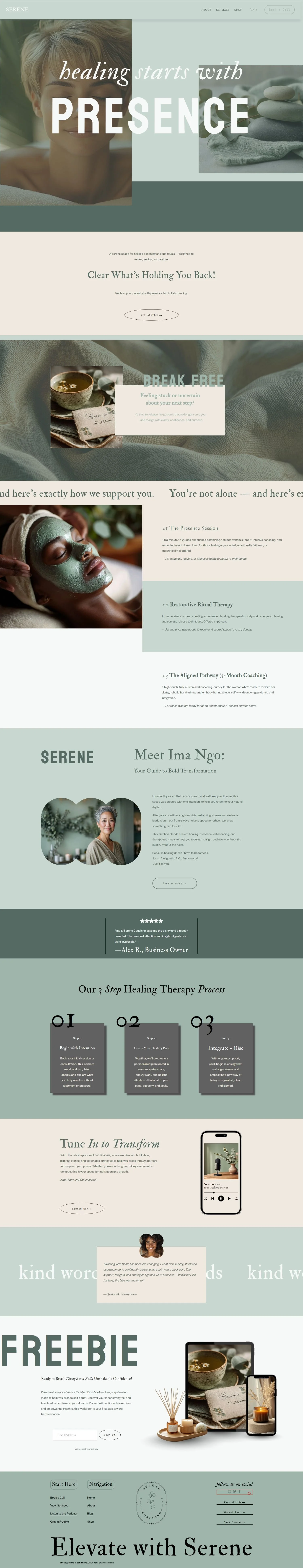 Built on Squarespace 7.1 with Fluid Engine, Serene is flexible, intuitive, and easy to customize—perfect for service-based wellness businesses that want a professional website without the overwhelm.